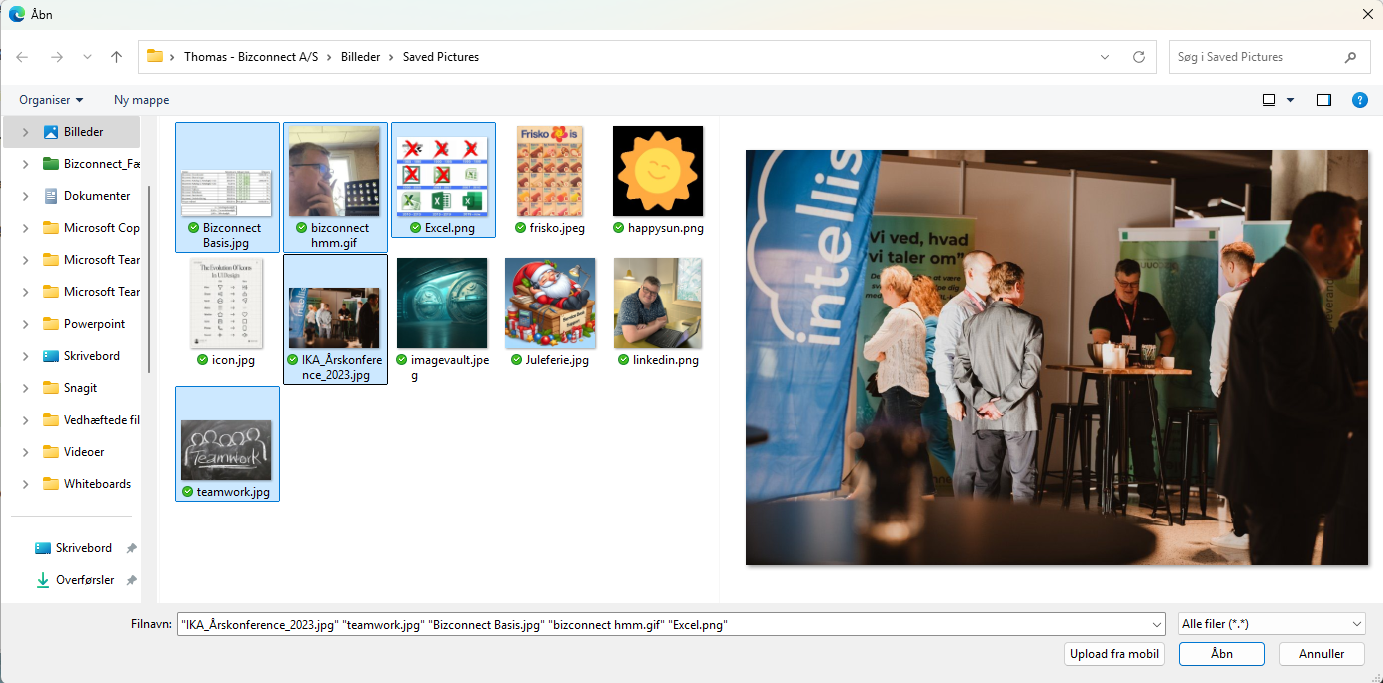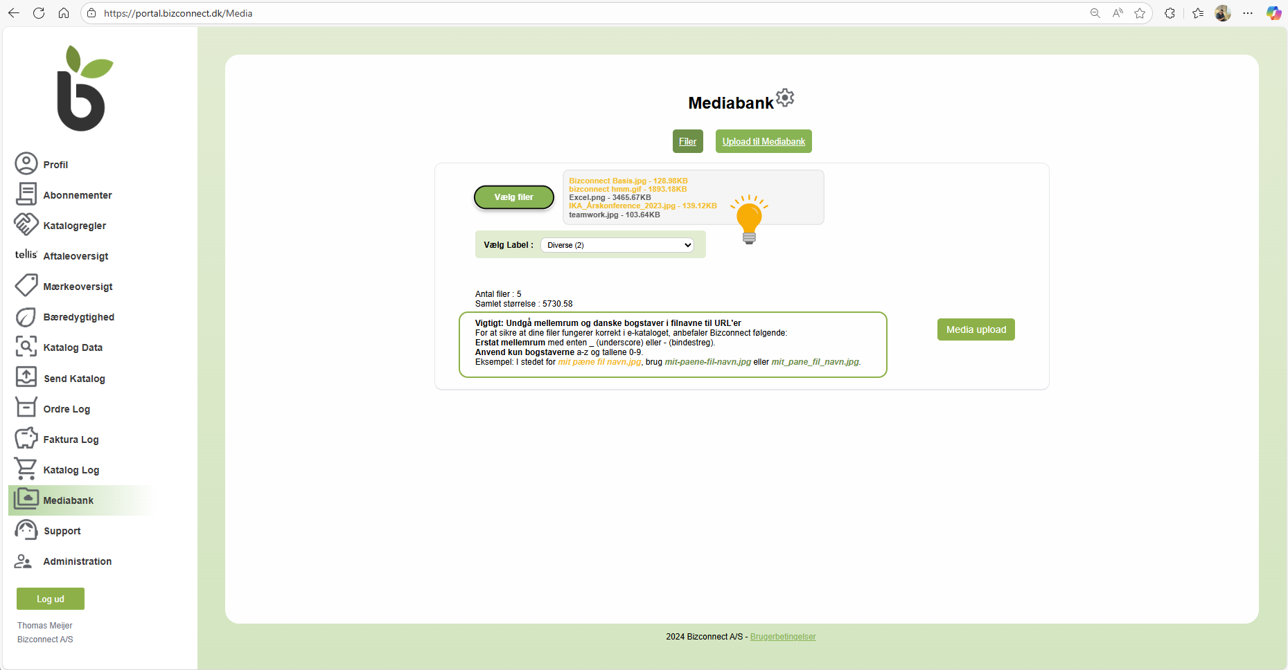 Når du uploader filer til Bizconnect, er det vigtigt at være opmærksom på filnavne. Mellemrum, specialtegn og bogstaver som æ, ø og å kan give problemer med URL’er og visning af filer, især i eksterne systemer.
