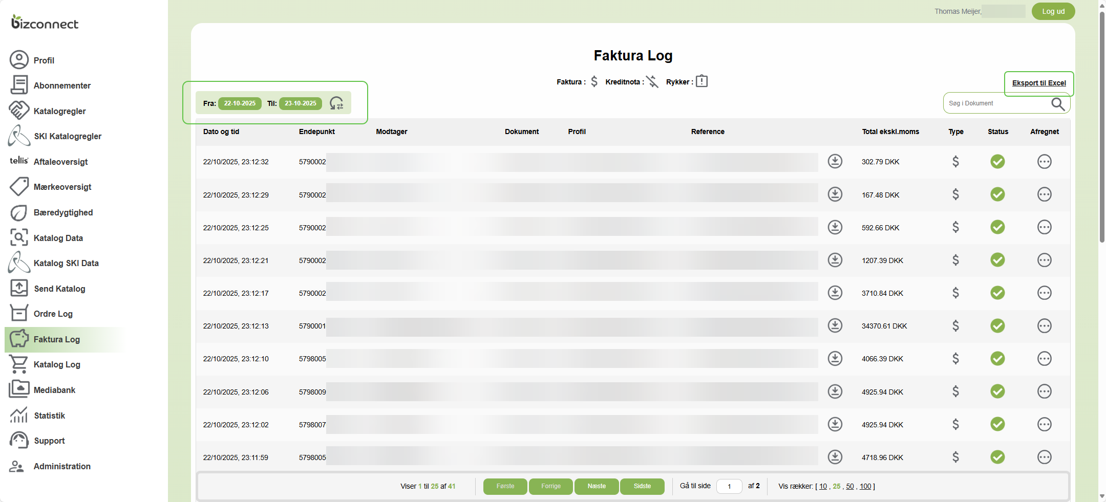 Bemærk, at Excel-eksporten følger den valgte periode.