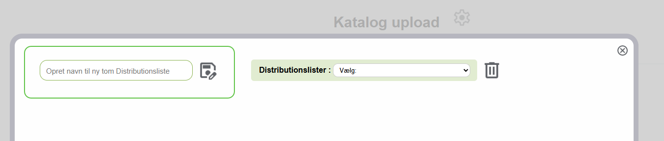 Navngivningen bestemmer du selv, og den skal blot give mening for dig, når du skal sende kataloger via dine distributionslister. Skriv navnet på din første distributionsliste og klik på ikonet for at gemme listen. Herefter kan de vælges i rullegardinet til højre.